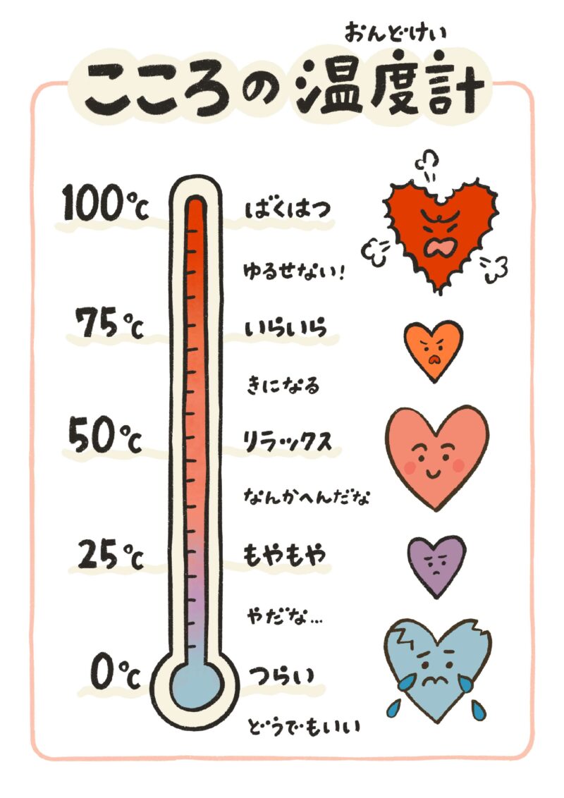 0(つらい)〜50(リラックス)〜100(爆発)で今の気持ちを表すようにしています。