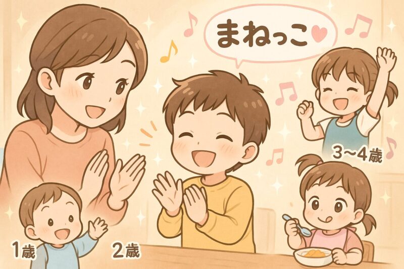 2. 年齢別「まねっこ」の例|0歳〜4歳半までの発達の流れ📈