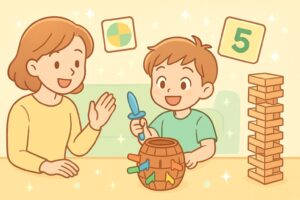 はじめに:遊びの中に「学び」は隠れている 5歳頃になると、ゲームへの興味がぐんと広がります。最近、うちの息子も「黒ひげ危機一髢」「ジェンガ」に大ハマり!✨ 最初はルールなんて気にせず、剣を同時に刺した ...