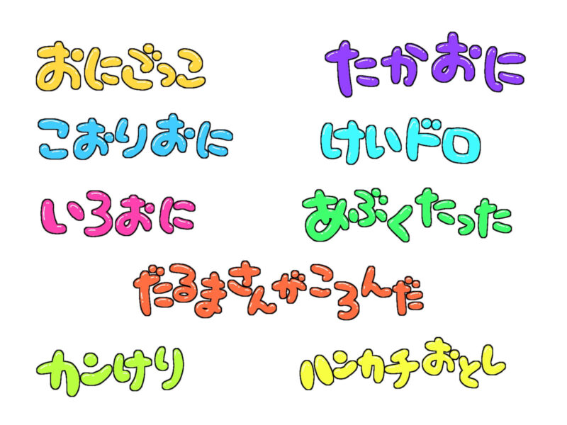 追いかけっこ、鬼ごっこ、キャッチボールなど。